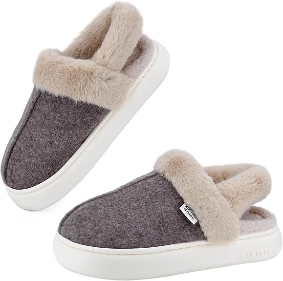 XIXITIAO Women Fuzzy Slippers – Furry House Slides, Soft EVA Plush Indoor/Outdoor Warm Shoes