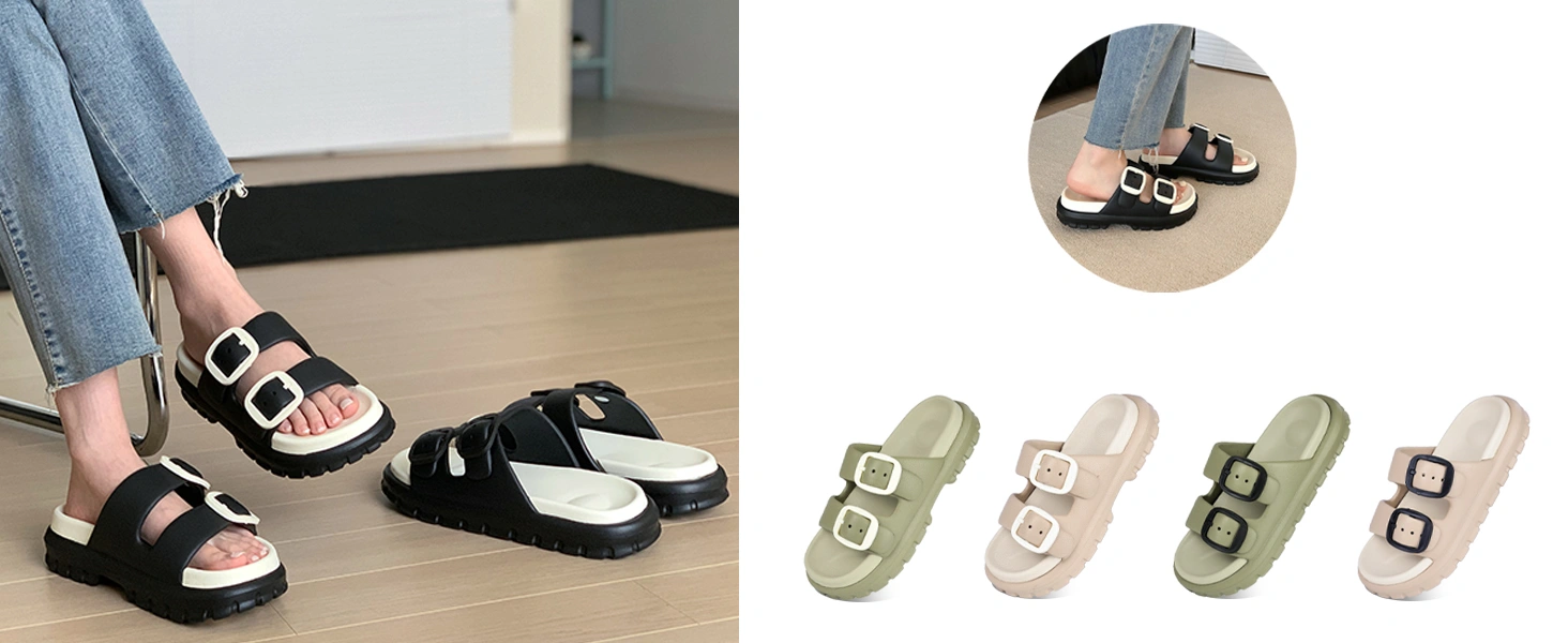 - 【Adjustable Double Buckles】Easy to adjust and get the most comfortable fit for your feet.