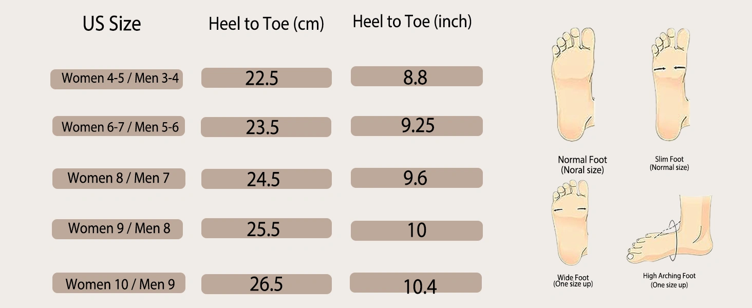 Size Chart: recommended to purchase according to the length of your feet. If you have wide or fat feet, you may want to size up for more comfort!