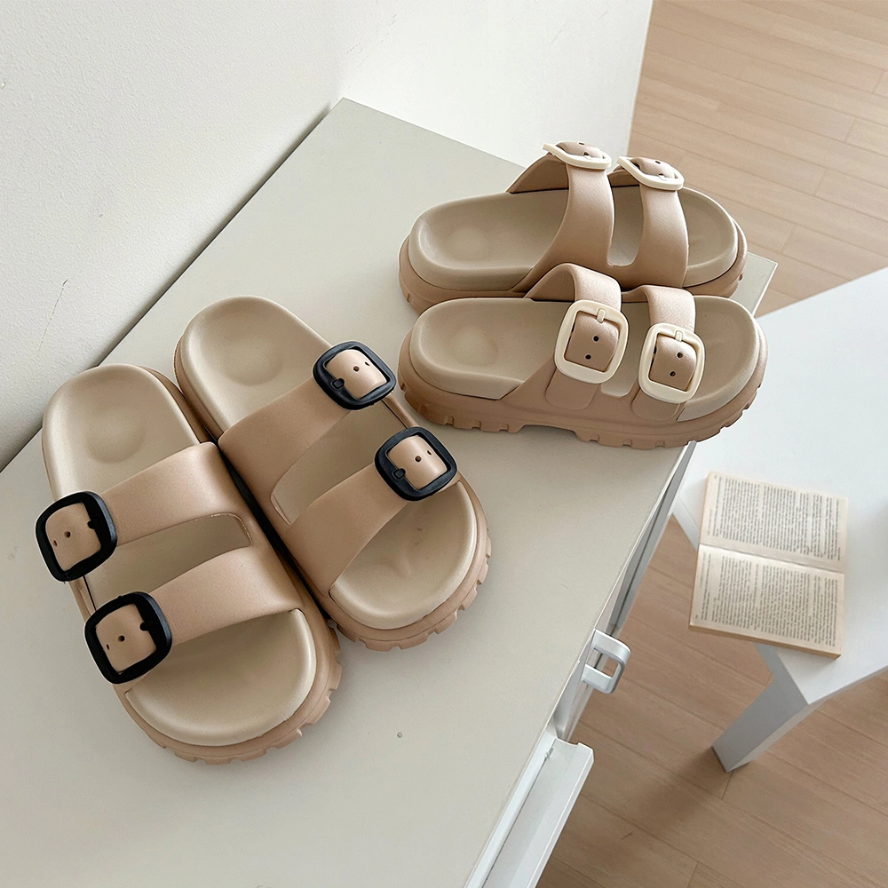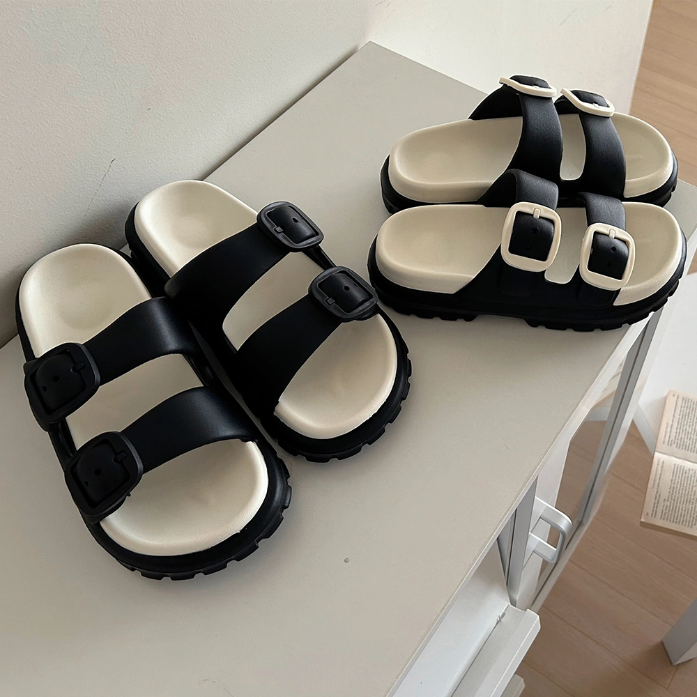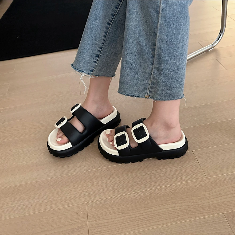 XIXITIAO Summer Cloud Thick-sole Slides Outwear Platform Lady Slippers Double Buckle Adjustable Sandals