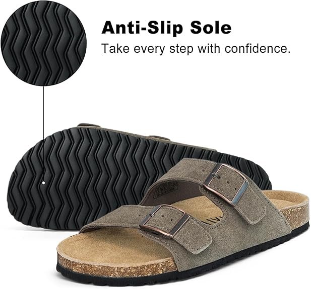 - Dual-Buckle Suede Upper: Crafted with soft, premium suede for a luxe touch and sophisticated look. The double adjustable buckles of womens sandals let you fine-tune the fit to accommodate narrow, wide, or high-instep feet.