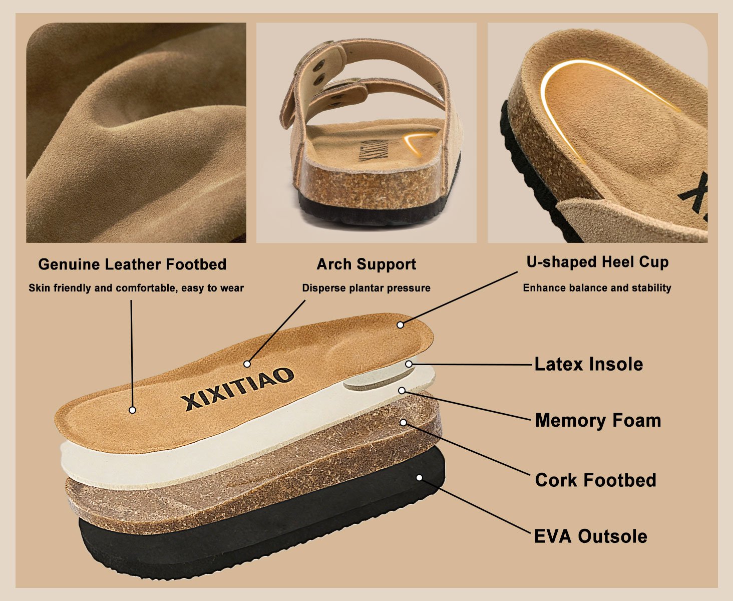 - Cork-Inspired Footbed: Features a supportive, cork-like footbed with gentle arch support that molds to your foot’s natural curve. The plush memory foam shock-absorbing cushioning reduces walking fatigue, making these slides sandals ideal for long days of shopping, commuting, or casual outings. A go-to “lazy shoe” for those who refuse to sacrifice comfort for style.
