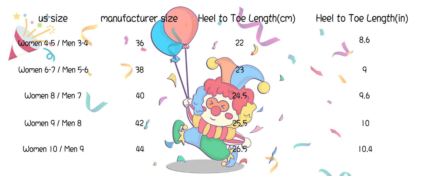 Size Chart: recommended to purchase according to the length of your feet. If you have wide or fat feet, you may want to size up for more comfort!