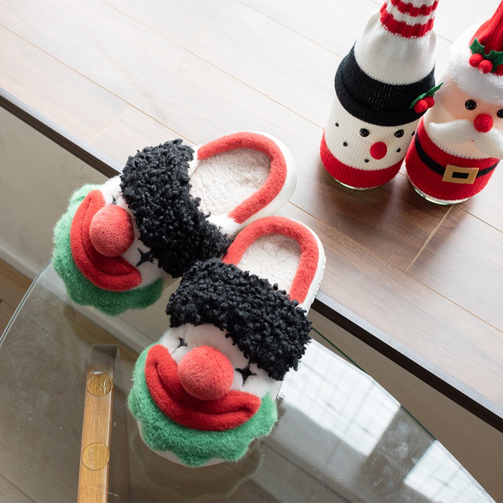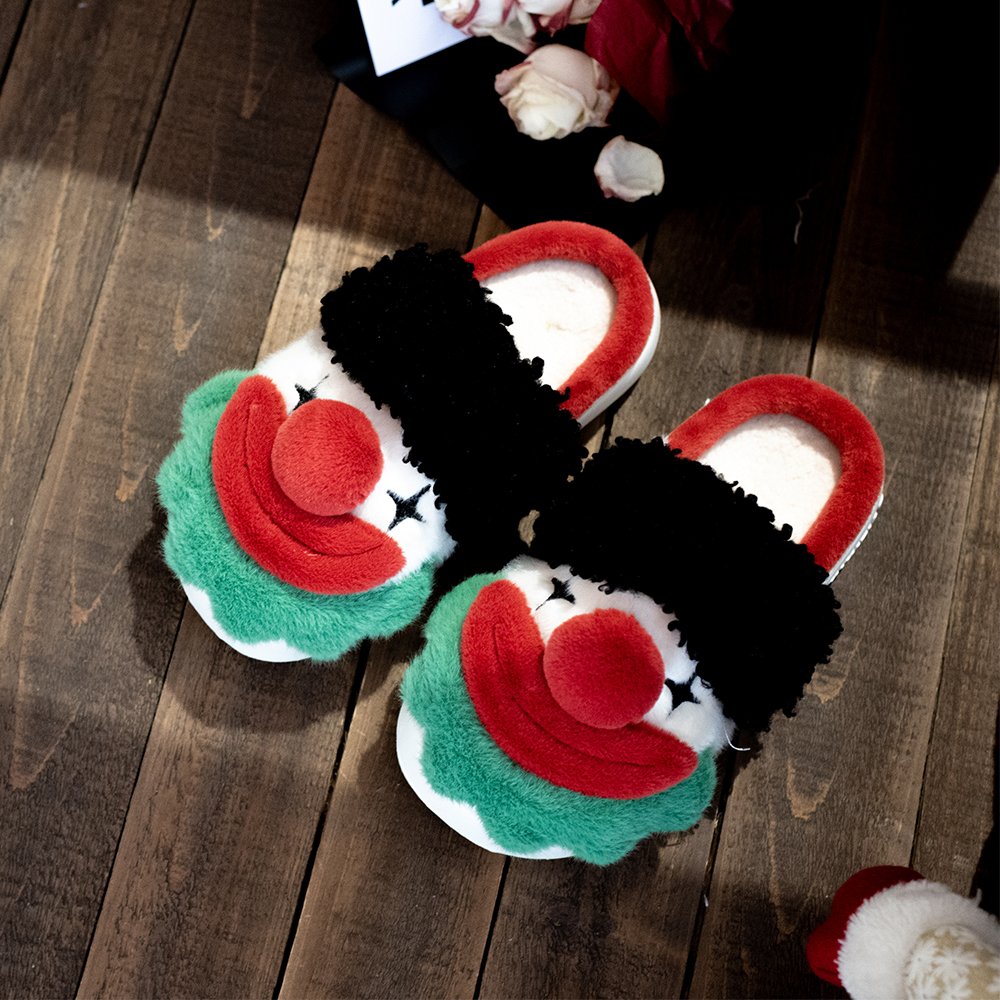 XIXITIAO Indoor Home Furry Clown Slippers for Men Women Cute Warm Holiday Themed Slippers Winter House Plush Slides