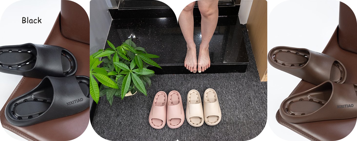 - Shower Slides with Holes: About twenty hidden air holes at the bottom of the slippers, speed up air circulation and prevent your feet from retaining water