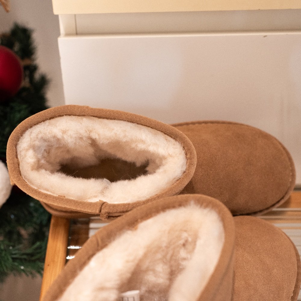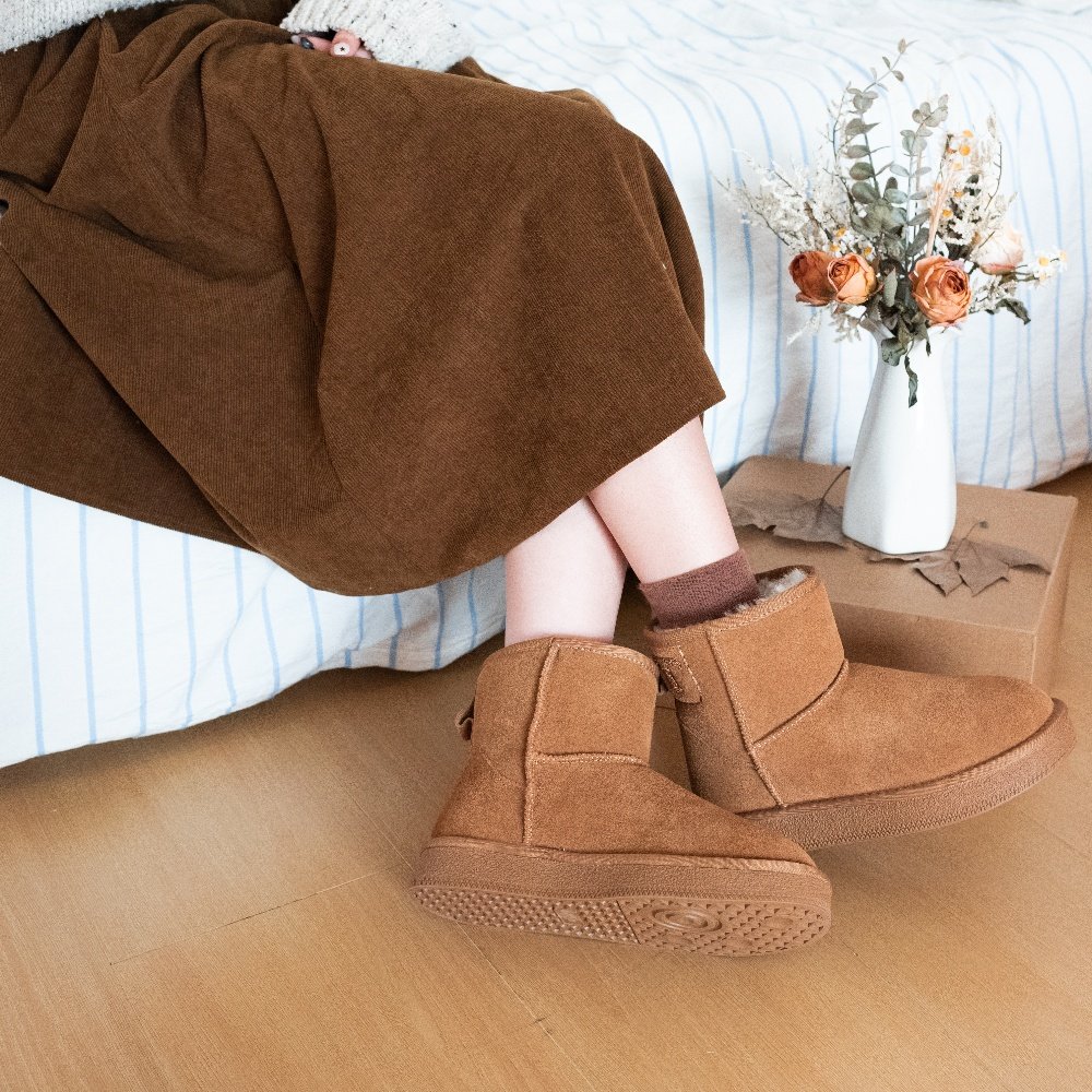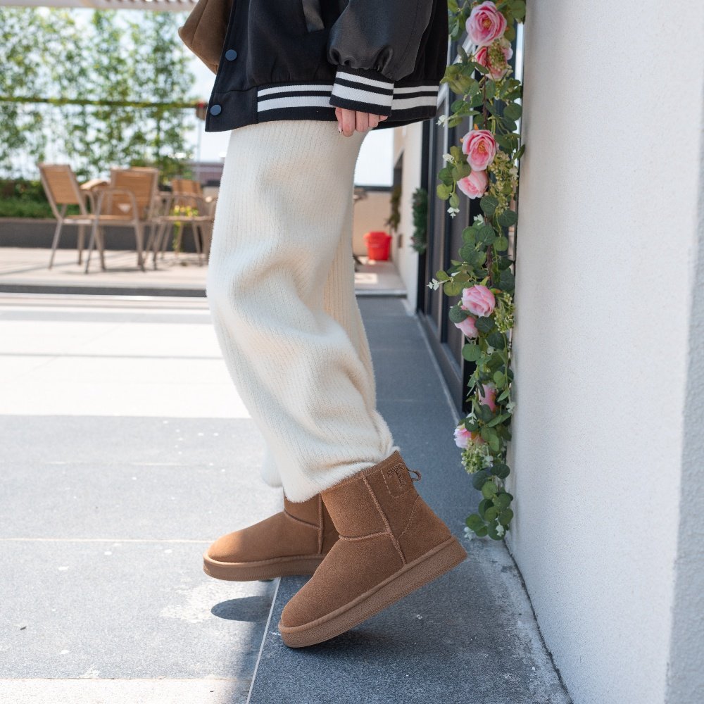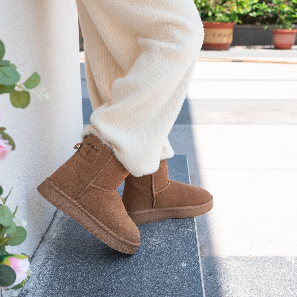 XIXITIAO Genuine Suede Faux Fur Lining Snow Boots
